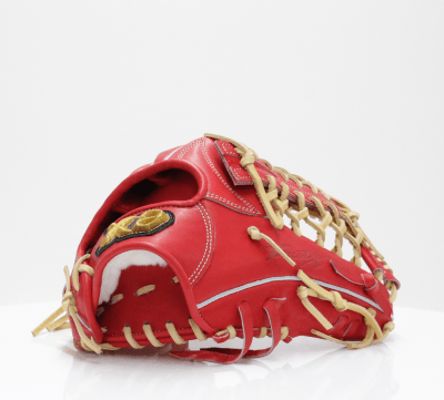 大きめの外野手用グラブで、背面にアーチをかけて、指先の芯に至るまで神経が行き届くような、手との一体感を持たせる設計になっています。